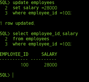 employee_id 가 100 인 사원의 salary를 28000으로 업데이트 했다