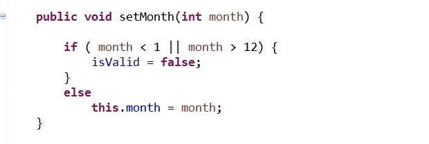 매개변수로 받은 month의 값이 1보다 작거나 12보다 클경우에는 isValid=의 값을 false로 하고 아닐경우 month 변수에 값을 넣는다.