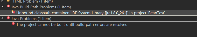 깃허브에 올린 코드들을 집에 가져와서 내려받으니까 오류가 프로젝트에 오류가 떠있다.