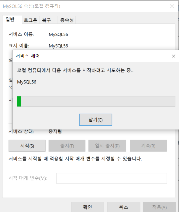 mysql을 중지 시켰고