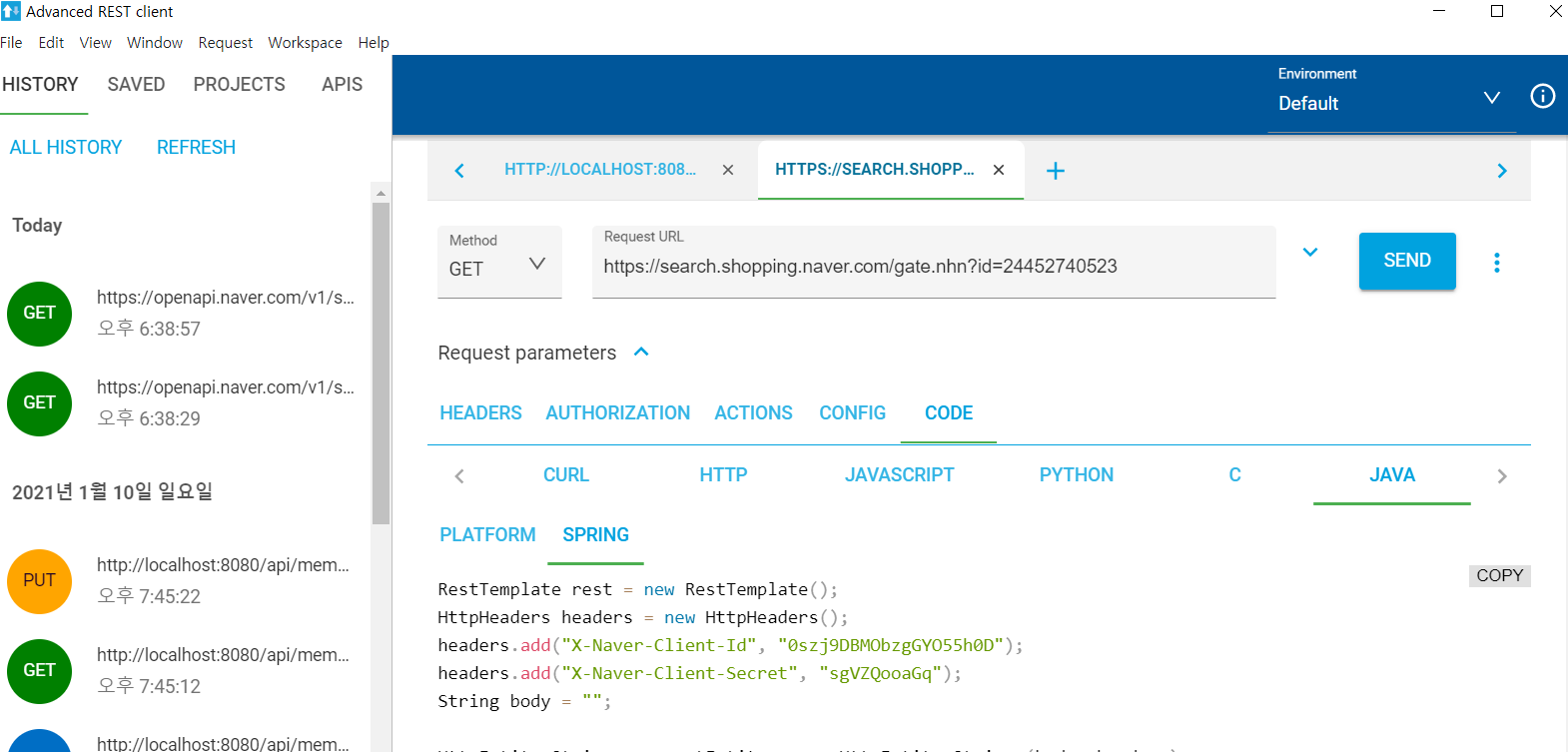 ARC(Advanced Rest Client)사용법 자바 코드로 바꾸기 본문