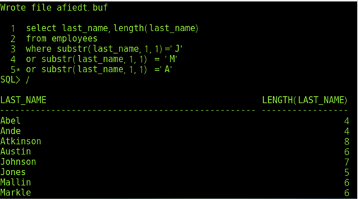 2. employees 테이블로부터 사원들의 last_name과 last_name의 길이를 출력하되 last_name이 ‘J’, ‘A’, ‘M’으로 시작되는 사원만 출력하시오. 또한 last_name을 기준으로 오름차순 정렬해서 출력하시오.