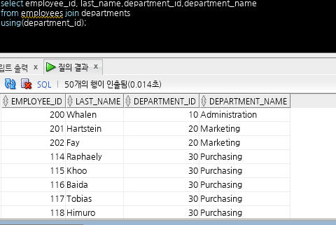 그리고 using절에서 참조하고있는 칼럼명에는 alias를 사용하면 안된다