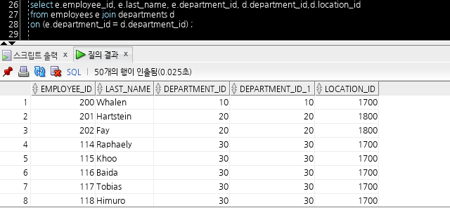 employees 테이블과 department테이블을 조인해서 employee_id,last_name,department_id,location_id를 출력할건데