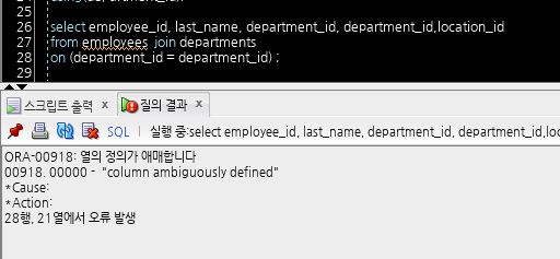 공통으로 존재하는 컬럼에 alias가 없어서 그렇다. employee_id, last_name. 이렇게 적었기 때문이다.